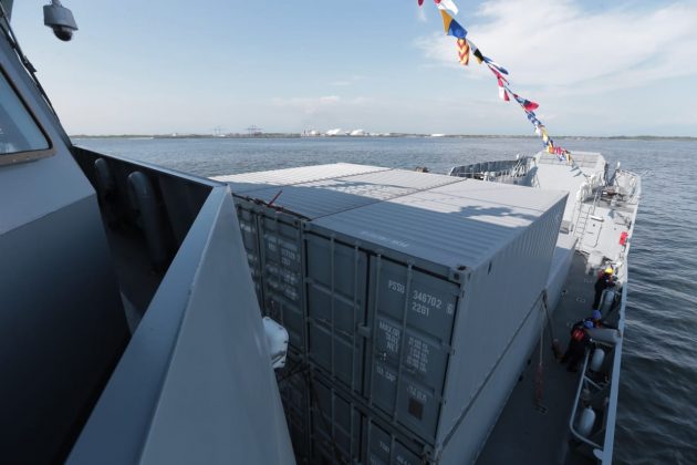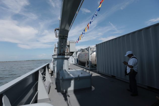 El buque, además, está equipado con una grúa para realizar movimientos de carga, una rampa para desembarque y ocho contenedores de 20 pies.