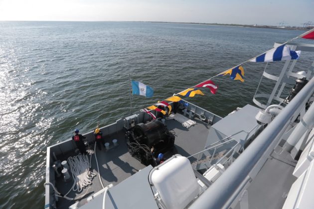 El buque logístico y de ayuda humanitaria BL 1601 Quetzal, que fue adquirido por el Estado de Guatemala, atracó esta tarde a la Base Naval de Pacífico.